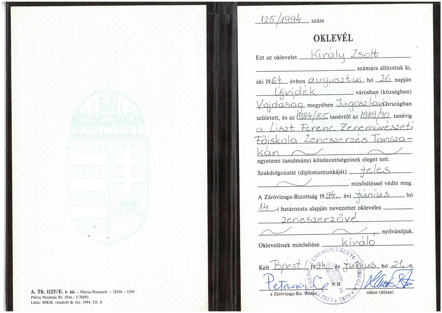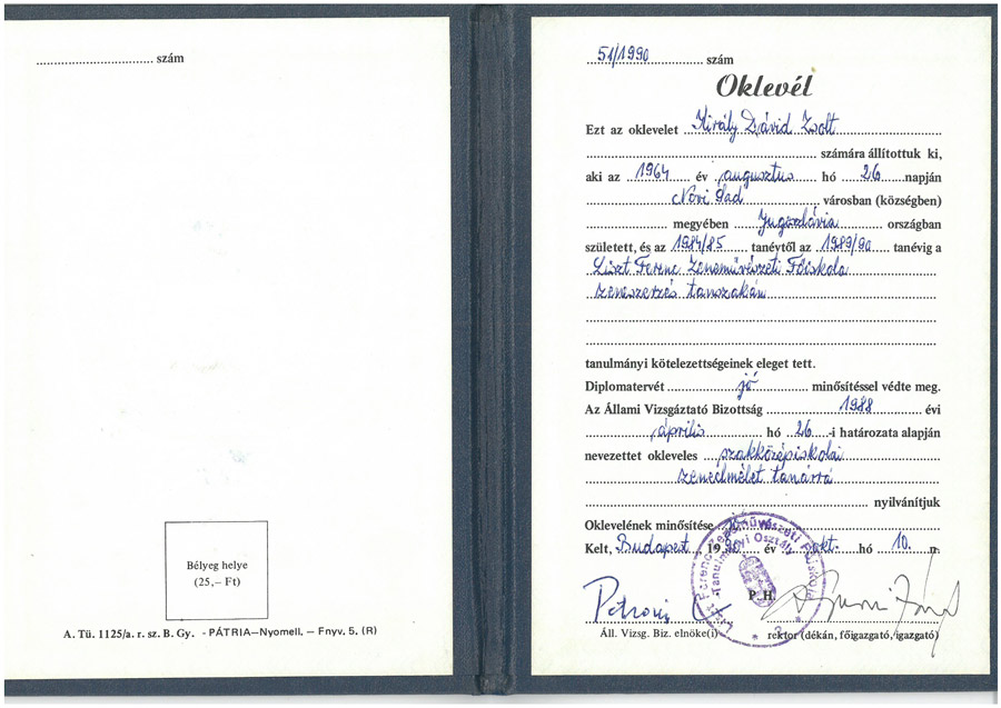 Király Dávid Zsoltnak a Zeneakadémia II. évfolyamában
