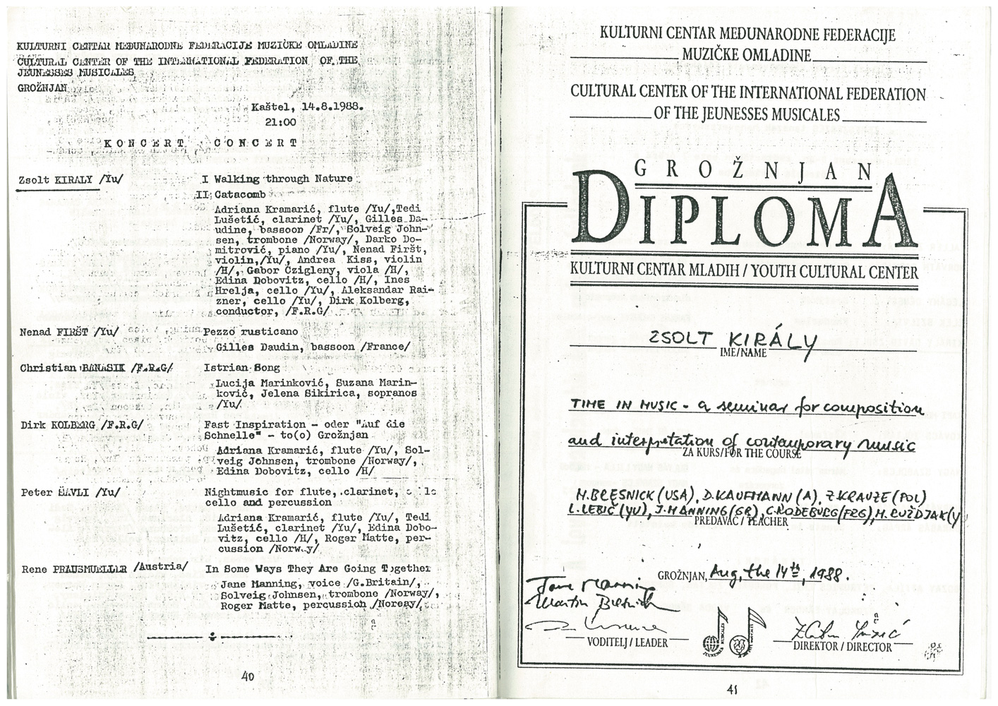 Zeneakadémiai tanulmányai mellett 1988-ban oklevelet szerzett a Zygmund Krauze (Lengyelország) által vezetett zeneszerzői szemináriumon Grožnjan-ban (Horvátország).